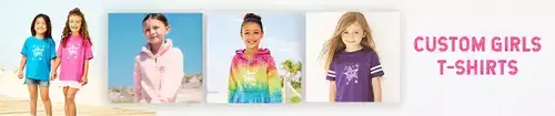• Choose the custom girl's apparel from the options above. Then use our easy online design to make custom-decorated girl's-sized T-shirts, tanks, and hoodies quickly and easily.